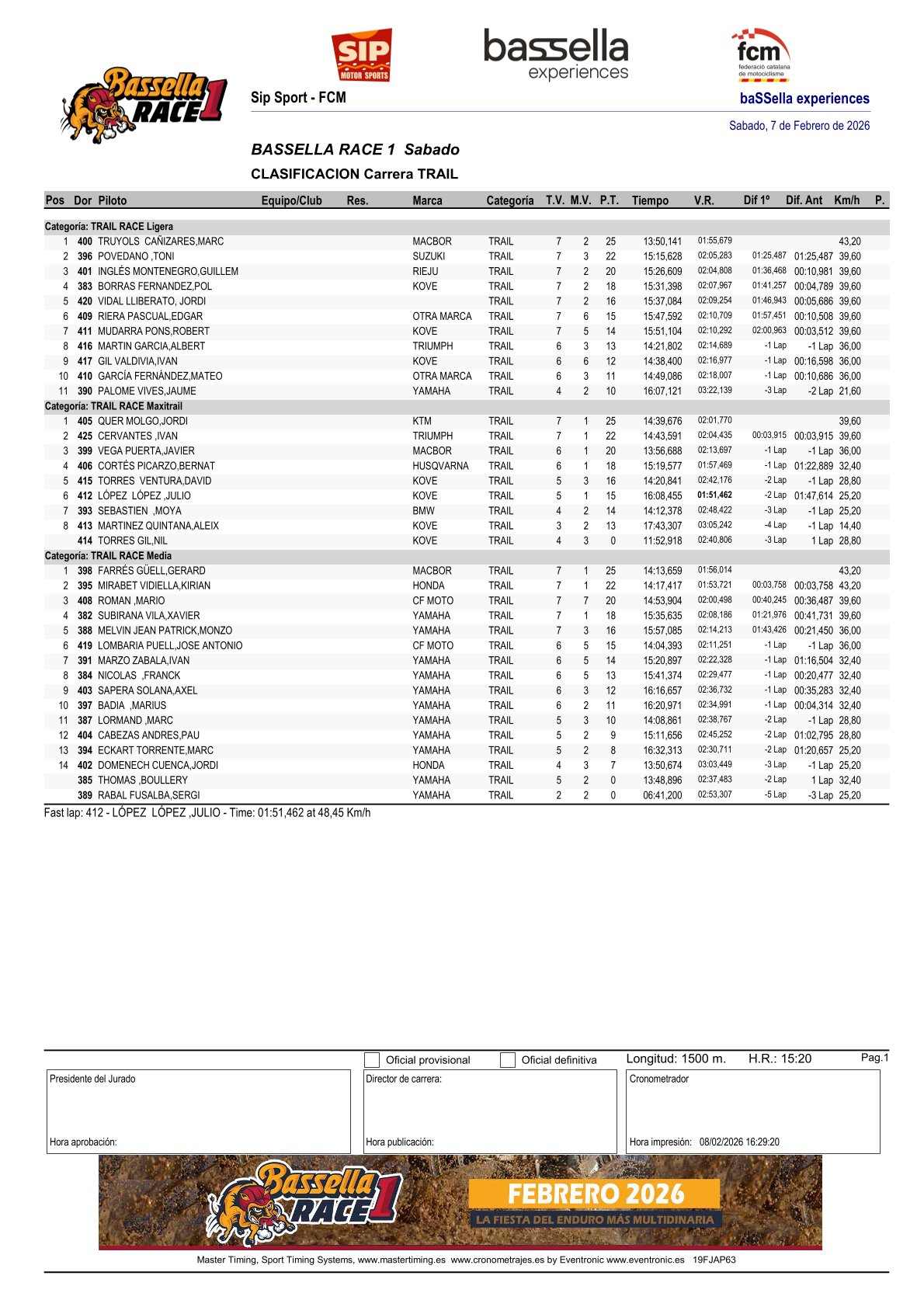 Die Adventure-Klasse war mit 36 Teilnehmern gut besetzt und musste auf dem schlammigen Kurs mächtig ackern. Die leichteren Exemplare hatten natürlich klare Vorteile und waren deshalb sehr weit vorne anzutreffen. Die Lightweight Trail Klasse konnte Marc Truyols auf seiner Macbor gewinnen, währen in der Maxitrail Klasse Jordi Quer auf seiner 890er KTM vor dem Triumph-Boschafter und mehrfachen Enduro-Weltmeister Ivan Cervantes den Sieg einfahren konnte. In der mittleren Gewichtsklasse holte sich der Dakar-Fahrer Gerard Farres auf seiner Macbor den Sieg, gefolgt von Kirian Mirabet auf seiner Honda und Mario Roman auf der CFMoto 450 MT.